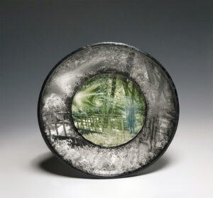 Stoneware. metallic oxide pigment, & photo image transfer.