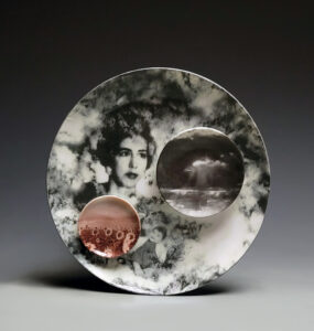 Reclaimed Porcelain, acrylic & digital photo image transfer.