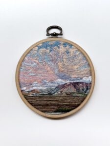 Cotton embroidery floss on canvas, mounted on beech hoop