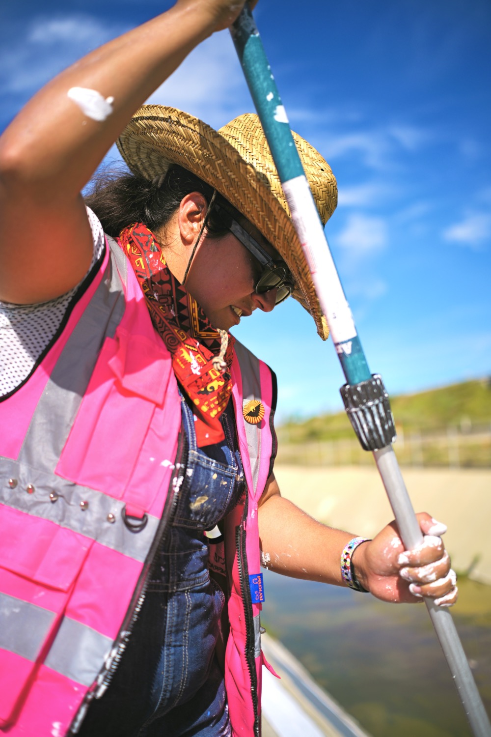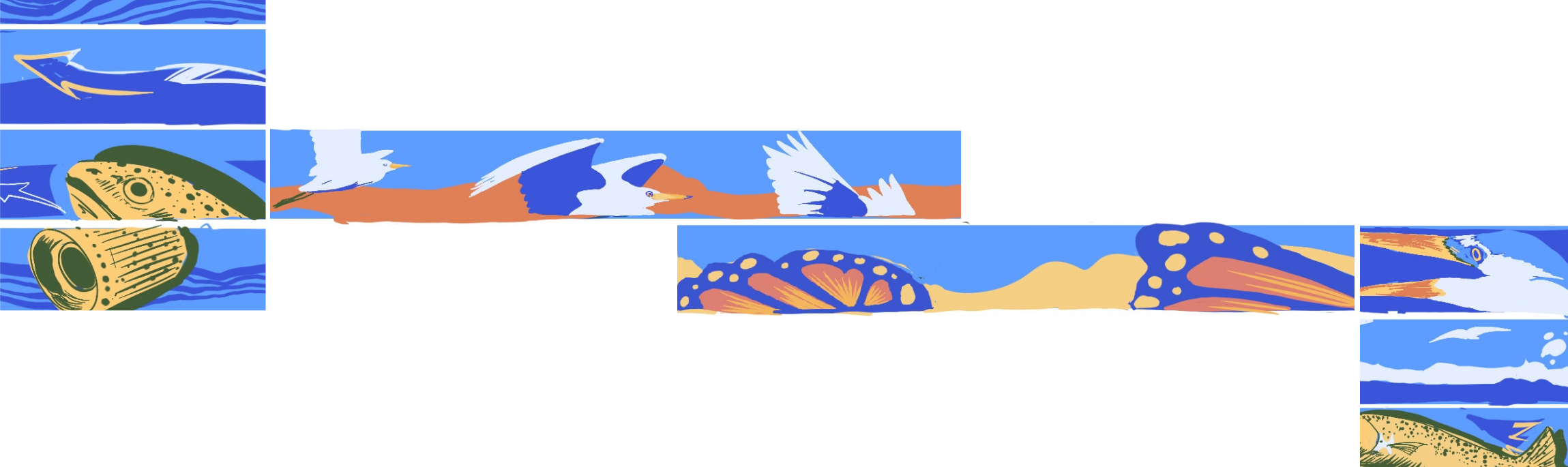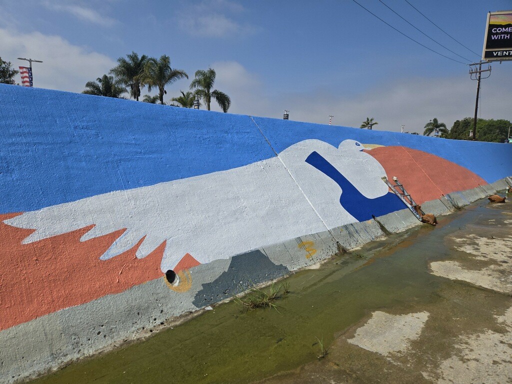 The mural highlights native plants such as tule, insects including red dragonflies and monarch butterflies, birds like egrets and great blue herons, and the waterways that exist alongside daily life yet often go unseen. By presenting the ditch as an ecological corridor in motion, the mural encourages viewers to reconsider their relationship to land and water. Through bold, legible imagery and intentional pacing, the work promotes stewardship, reflection, and shared responsibility for clean waterways, healthy ecosystems, and community well-being. Rooted in place, the mural belongs to the land, the community, and all who pass through it.