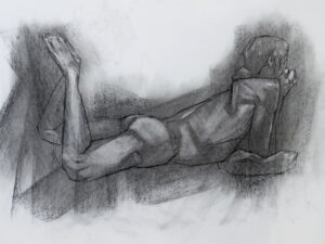 A study of a man, drawn from life using reductive charcoal techniques.